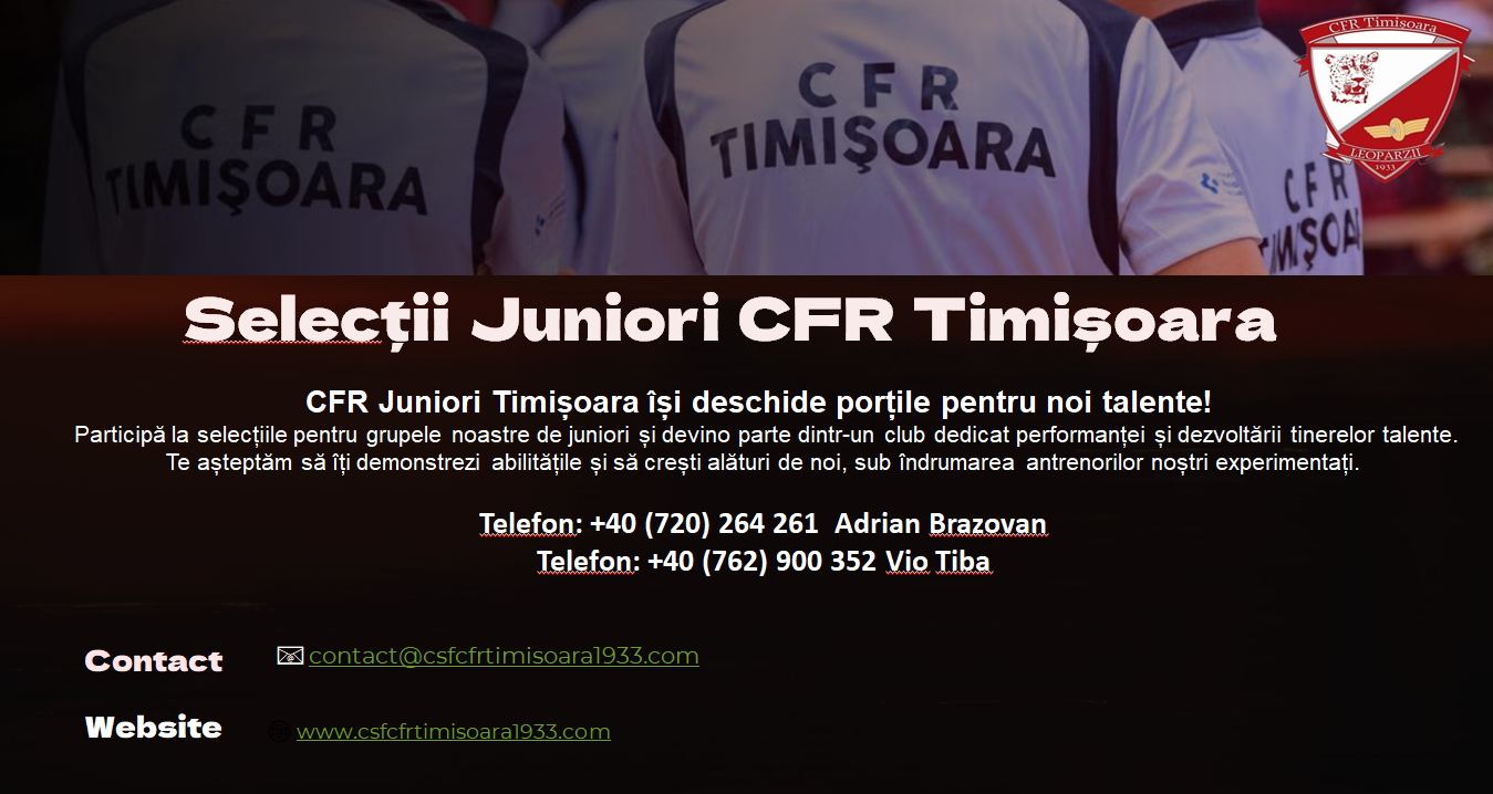 Ești gata să faci parte din familia CFR Juniori Timișoara?